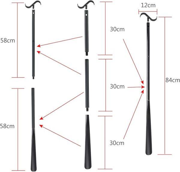 Permite ponerse ropa y calzado sin agacharse. Ligero, resistente y desmontable en 3 piezas, ideal para personas con movilidad reducida y perfecto para usar en casa o llevar de viaje.